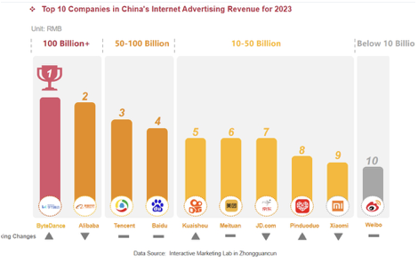 In 2023, the competitive landscape of China's Internet giants was slightly adjusted, with ByteDance, which owns popular apps such as Douyin and Toutiao, surpassing Alibaba & Tencent to become the top company in terms of revenue.